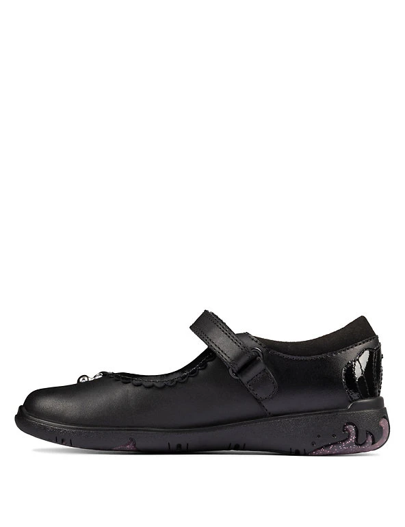 These leather Mary Jane shoes from Clarks have a fun, ocean-themed twist. They feature a classic round-toe style, with an easy riptape bar that kids can fasten themselves. The durable design has a thick, flexible sole and padding to keep young feet comfortable. Kids will love the mermaid detailing on the inner and outer sole, and eye-catching embellishments like the charm and patent shell at the heel.