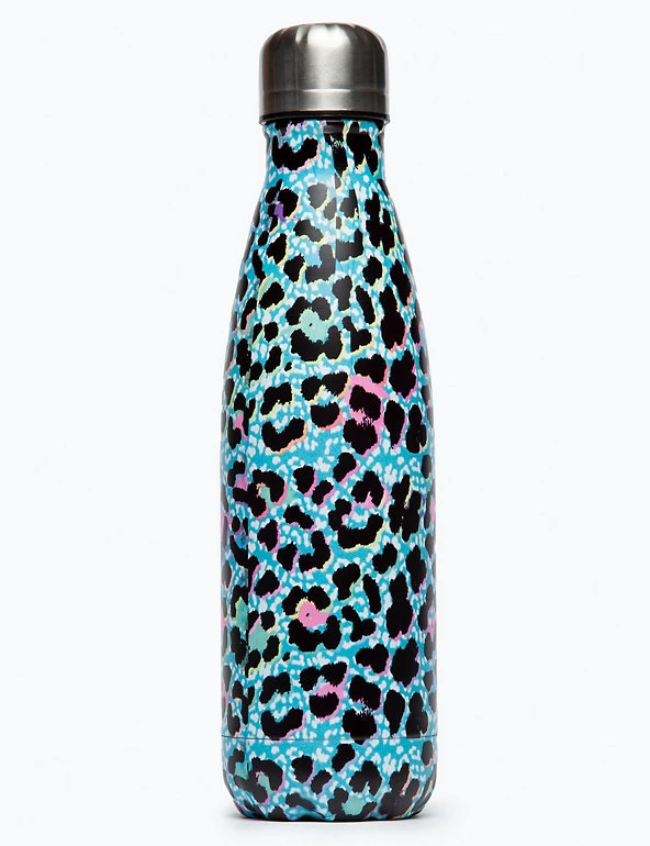 Stand out with this bold leopard print water bottle from Hype. The robust stainless steel design has a screw-top lid to prevent spills. It’s complete with branding at the front and on the lid.