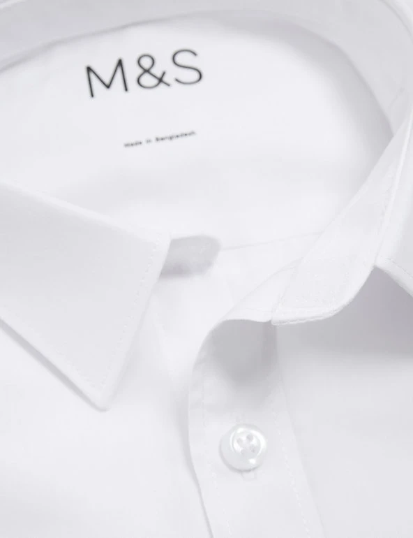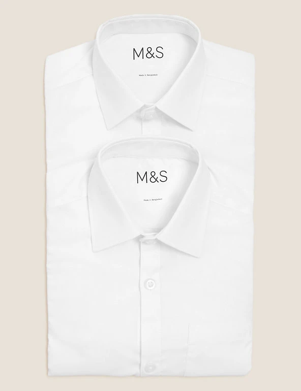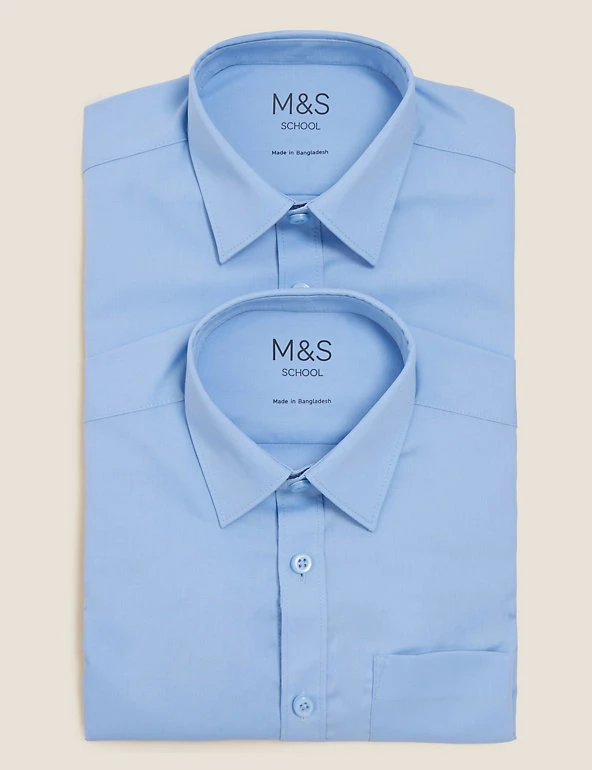 With more cotton than ever, our regular fit short sleeve school shirt comes in a handy two pack. Our ultimate school shirt is Non Iron and Stain Resistant, perfect for the day to day wear and tear of the school classroom. For those younger sizes (up to 8 years) these shirts feature our practical Easy Close top button – rip tape behind the top button making dressing simple. We are transitioning the polyester in this garment to recycled polyester. While we transition, customers may receive items made with either sustainable sourced cotton and recycled polyester or just sustainable sourced cotton and polyester.