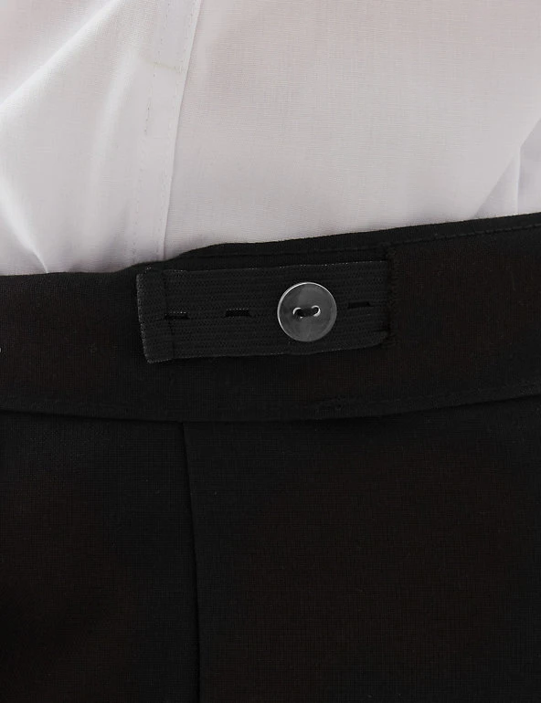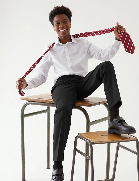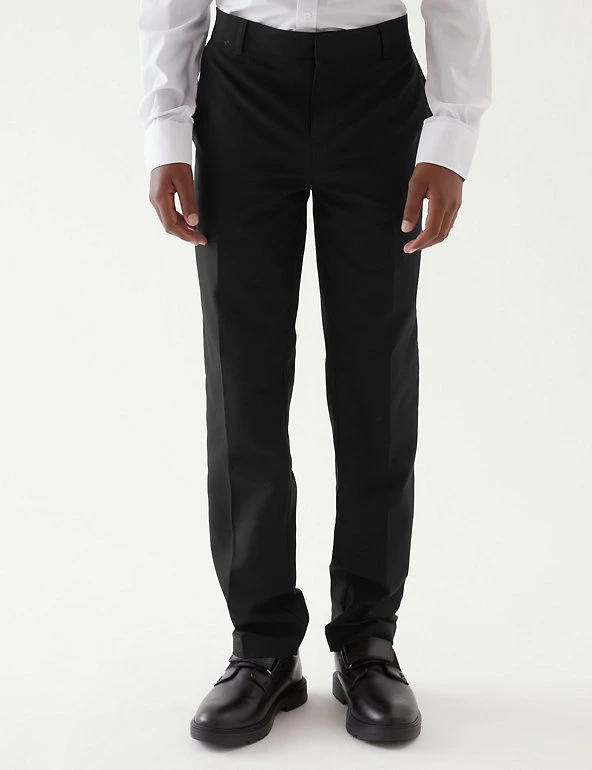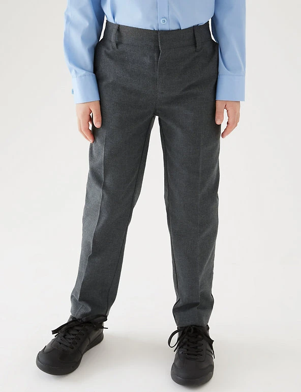 Stock up their schoolwear collection with this two-pack of trousers. Slim fit, with a narrower slim leg. Adjustable waist and hem to keep them comfy as they grow. Water-repellent Stormwearâ„¢ technology keeps them dry in showers. Crease-resistant fabric ensures all-day smartness. Made with recycled polyester and sustainable viscose.