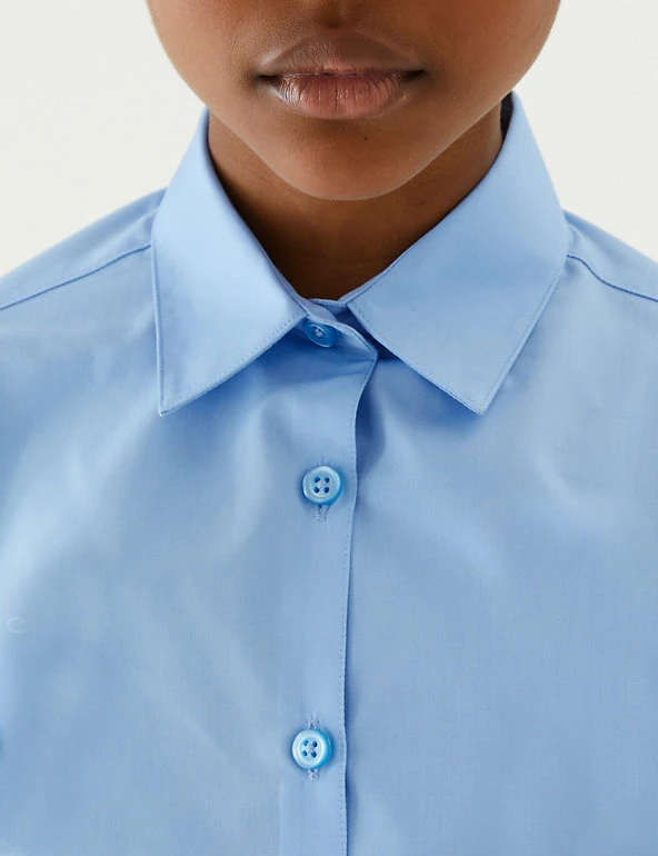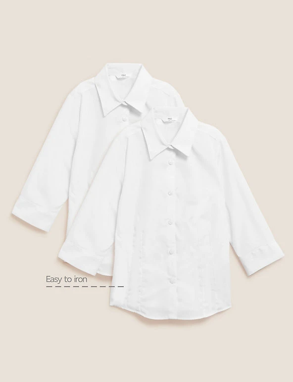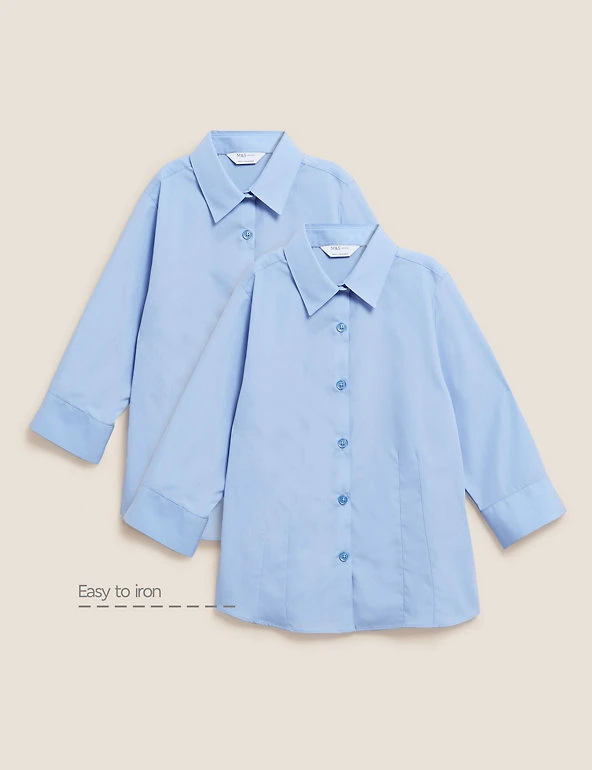These fashionable school shirts have classic point down collar as well as three quarter sleeves and come in a handy two pack. Completed with our ever so clever Easy to Iron finish, a quick press and they are ready to go. We are transitioning the polyester in this garment to recycled polyester. While we transition, customers may receive items made with either sustainable sourced cotton and recycled polyester or just sustainable sourced cotton and polyester.