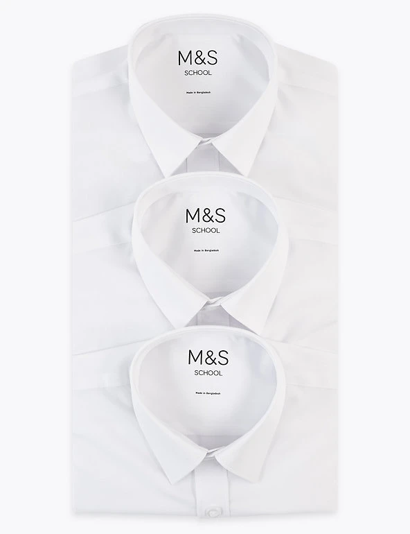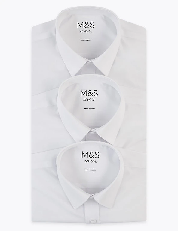 These boys’ long sleeve shirts come in a longer length for taller children and feature our easy to iron technology, so they only need a quick press for a crisp finish. Expandable stretch cuffs (up to 8 years) support independent dressing by reducing fiddly fastenings. Handy pack of three. We are transitioning the polyester in this garment to recycled polyester. While we transition, customers may receive items made with either sustainable sourced cotton and recycled polyester or just sustainable sourced cotton and polyester.