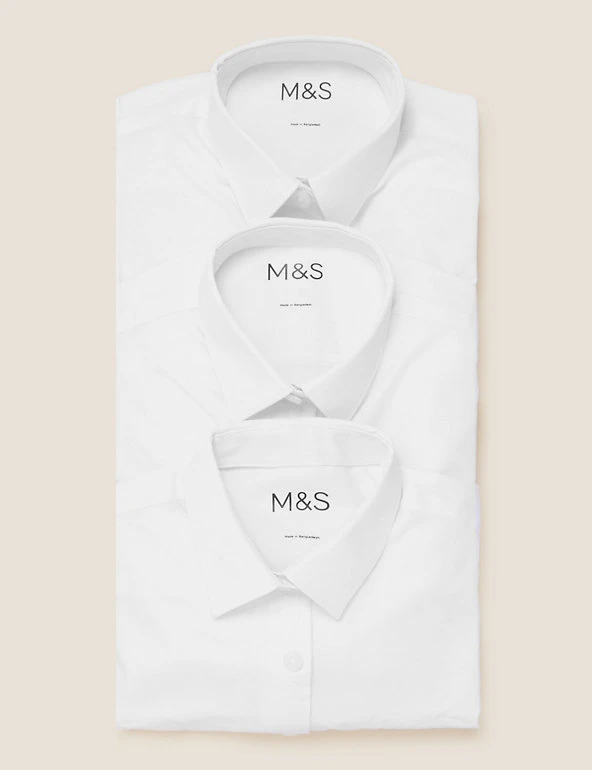 Make getting ready for school as stress-free as possible with our three pack of girls’ short-sleeved shirts. Regular fit for complete comfort. From our Adaptive range, they’re perfect for children with sensory issues or those who need a little help dressing, as we added riptape fastening behind the button placket and removed itchy internal labels. Thanks to the easy-to-iron finish, all they need is a quick press and they’re ready to wear. We are transitioning the polyester in this garment to recycled polyester. While we transition, customers may receive items made with either sustainable sourced cotton and recycled polyester or just sustainable sourced cotton and polyester.