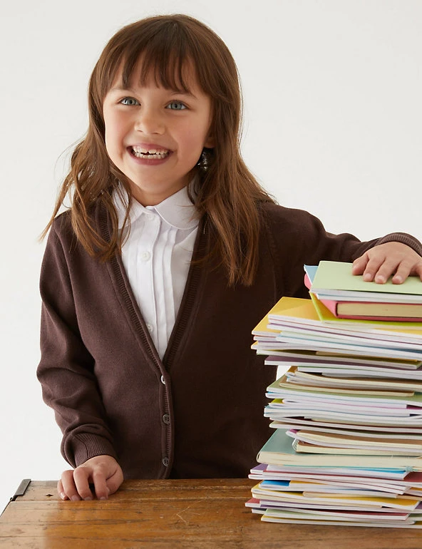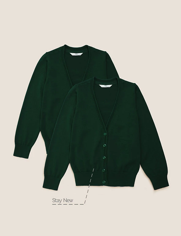 Have a smart layer at the ready every day of the school week with our handy two pack of children’s cardigans. Made using pure cotton as well as our StayNEW™ technology which reduces bobbling and colour loss, keeping clothes looking newer and brighter for longer. We are transitioning this garment to organic cotton. While we transition, customers may receive items made with either sustainably sourced cotton or sustainably sourced organic cotton. We only ever use responsibly sourced cotton for our clothes.