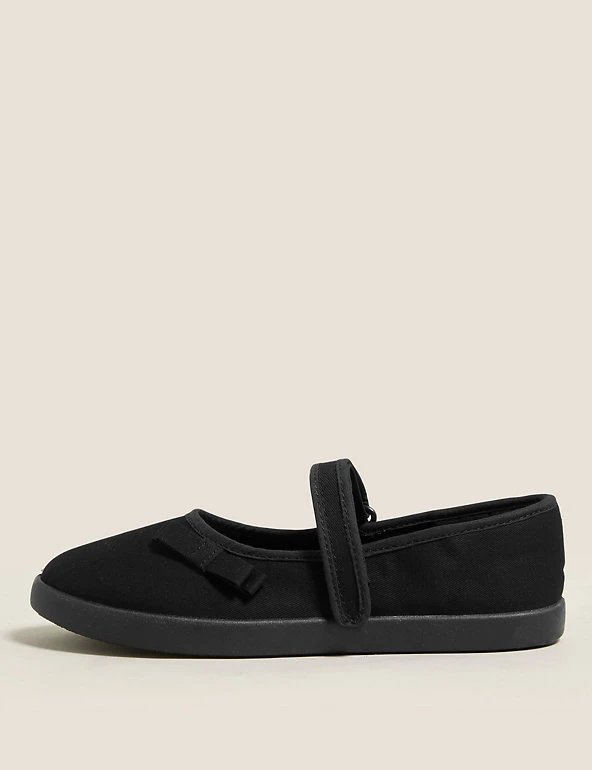 A school uniform classic, these smart plimsolls are made from pure cotton for all-day comfort. Mary Jane design with soft collar padding and a riptape strap for effortless dressing. Made with non-marking soles that won’t scuff floors. Best of all? These shoes can be popped in the washing machine for easy care. This product is vegan.