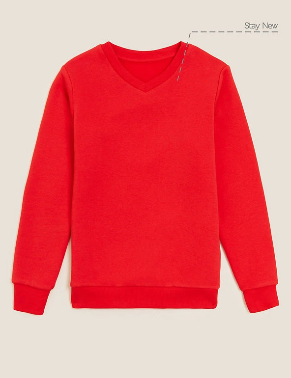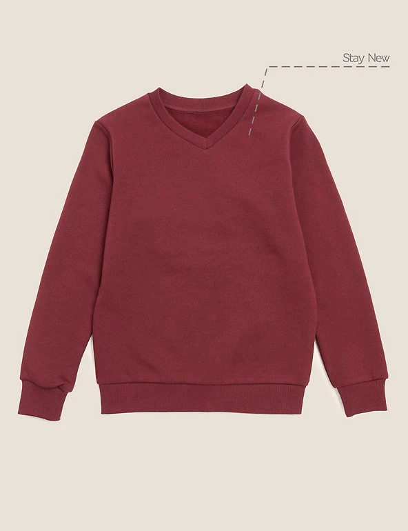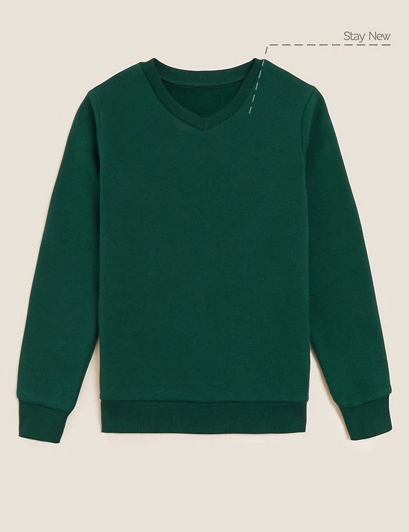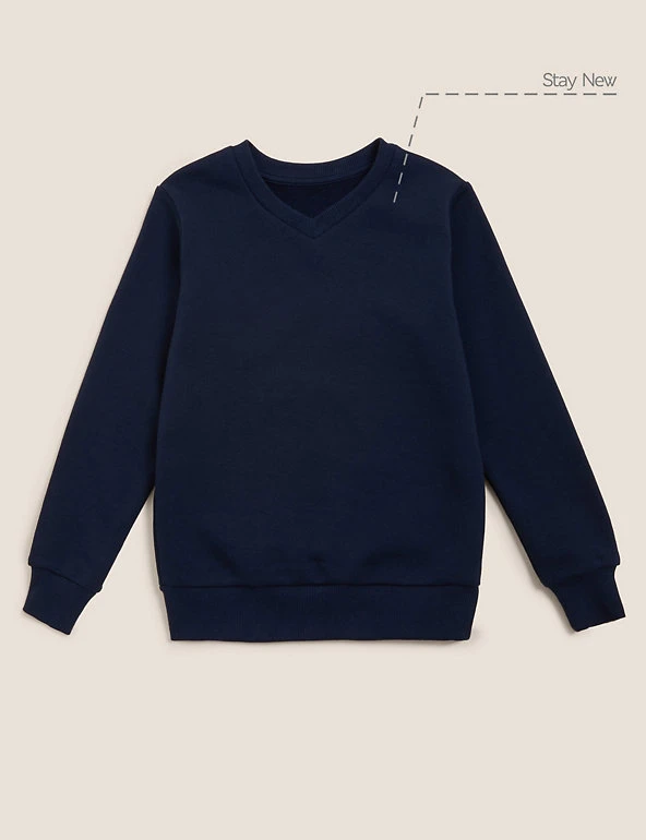 This unisex sweatshirt is made from a breathable, cotton-rich material to keep them comfy all day. V-neck with a regular fit. It’s made with our StayNew™ technology to keep its colour rich and bobble-free, wash after wash. We only ever use responsibly sourced cotton for our clothes.