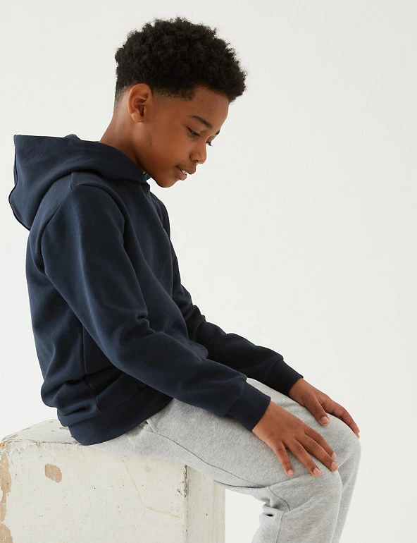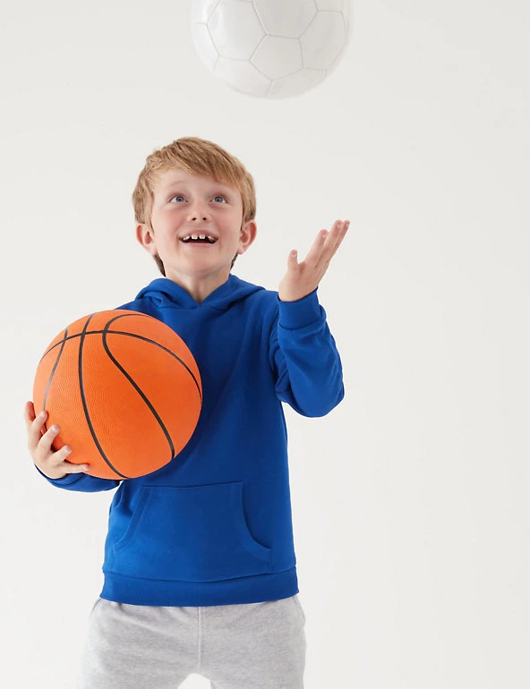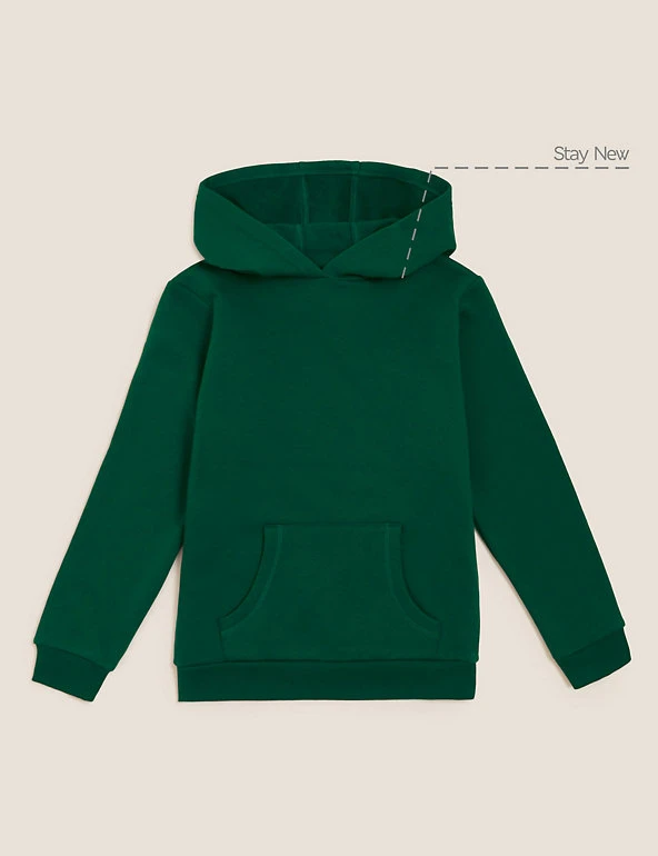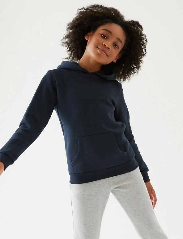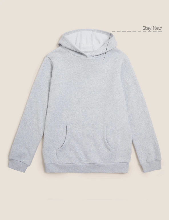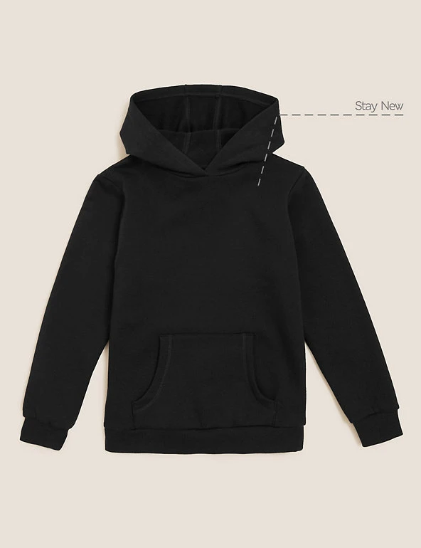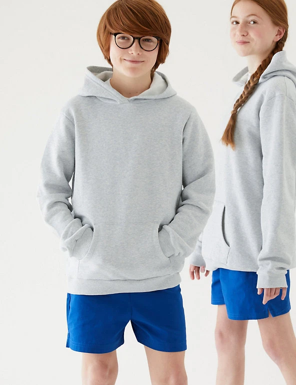 This cotton-rich hooded sweatshirt is a great choice for PE classes and after-school sports. Loose fit so it can be layered over school polos and uniforms. An anti-bacterial finish keeps kids feeling and smelling fresh for longer. Our StayNewâ„¢ technology helps to prolong the colour and quality of the fabric for longer-lasting wear. We only ever use responsibly sourced cotton for our clothes.