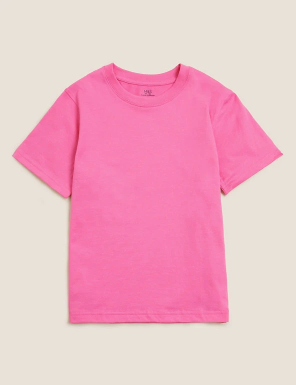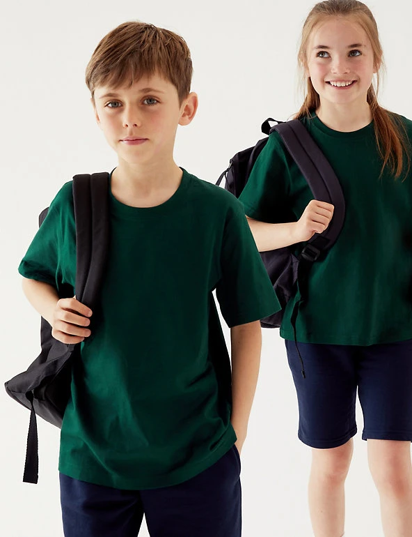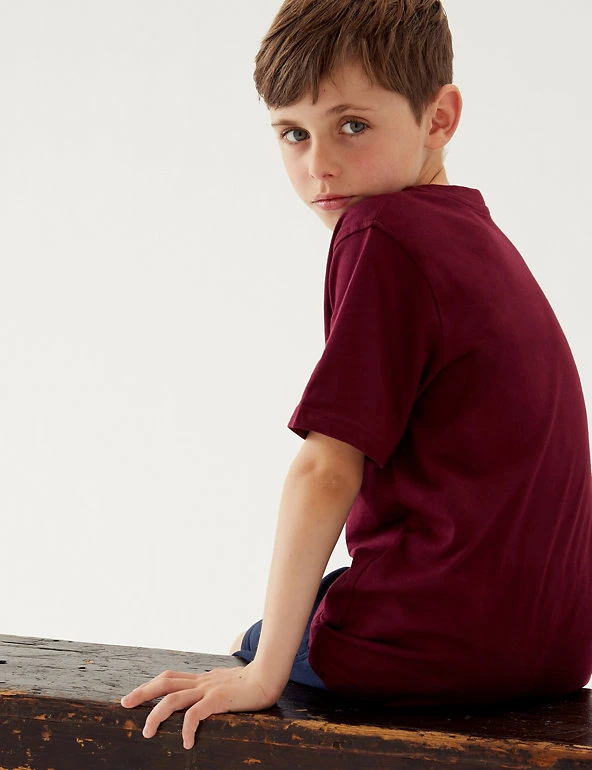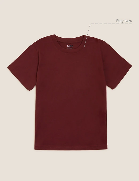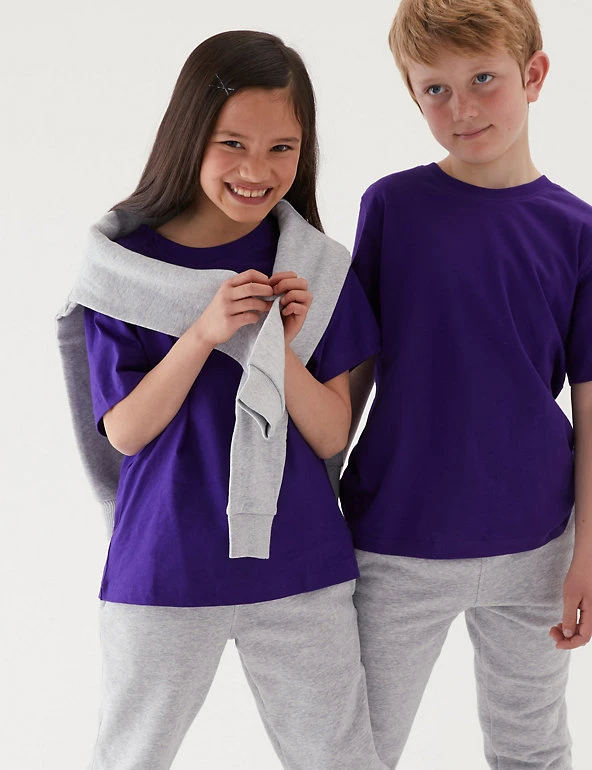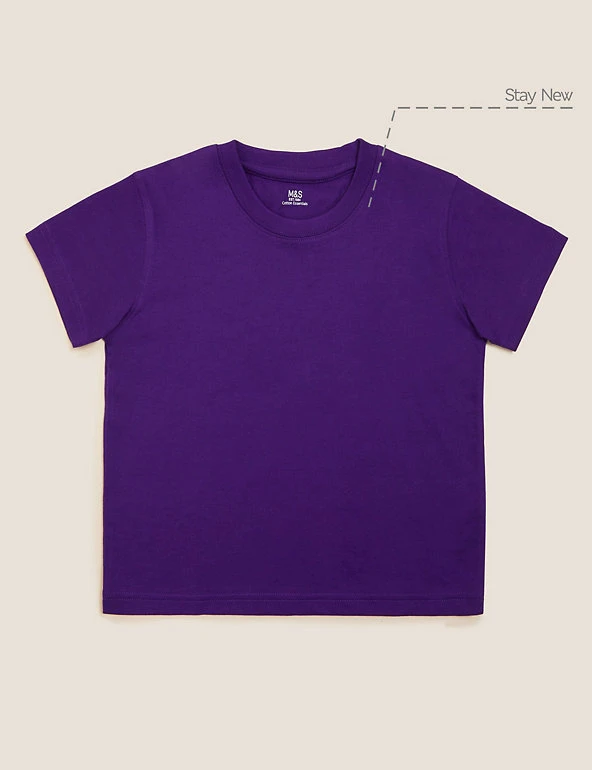 Our cheerful pure cotton t-shirt is perfect for P.E sessions or casual everyday wear. Featuring short sleeves and a crew neck for cool style and comfort, this kids’ t-shirt will keep them feeling fresh and comfortable thanks to the breathable cotton composition. With StayNEW™ technology, this t-shirt is designed to stay looking fresh and bright for longer, so it can be washed and worn without worry.We only ever use responsibly sourced cotton for our clothes.