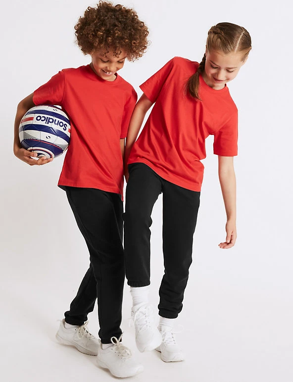 Seamlessly blending sporty style and easy comfort, these cotton rich joggers are the essential active wear for kids. These joggers feature StayNEWâ„¢ technology that helps to minimize colour fading even with all the washes kid’s active wear has to go through. Added Active Sportâ„¢ technology gives breathability for long-lasting freshness from pitch to sports court and back again, kids will be ready to take on sports any day of the week, making these unisex joggers the perfect solution for any children’s active attire. We only ever use responsibly sourced cotton for our clothes.